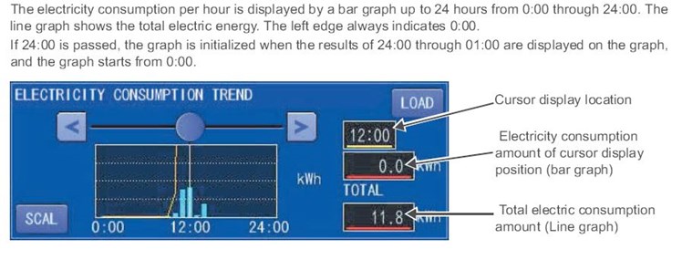 Users can use this monitoring tool to easily see electricity consumption trends over specific periods of time. This is especially helpful to help predict future energy usage based on similar production volumes.