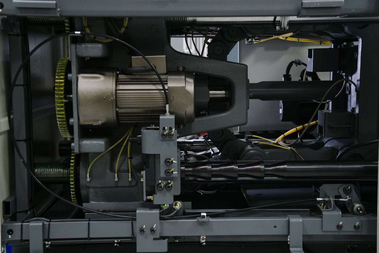 On the moving platen, linear guides are used instead of tie bar bushing to ensure steady, precise movement. This friction free drive system is also used on the injection unit to ensure more accurate injection speed and back pressure control. This ensures shot-to-shot repeatability over the life of the machine.