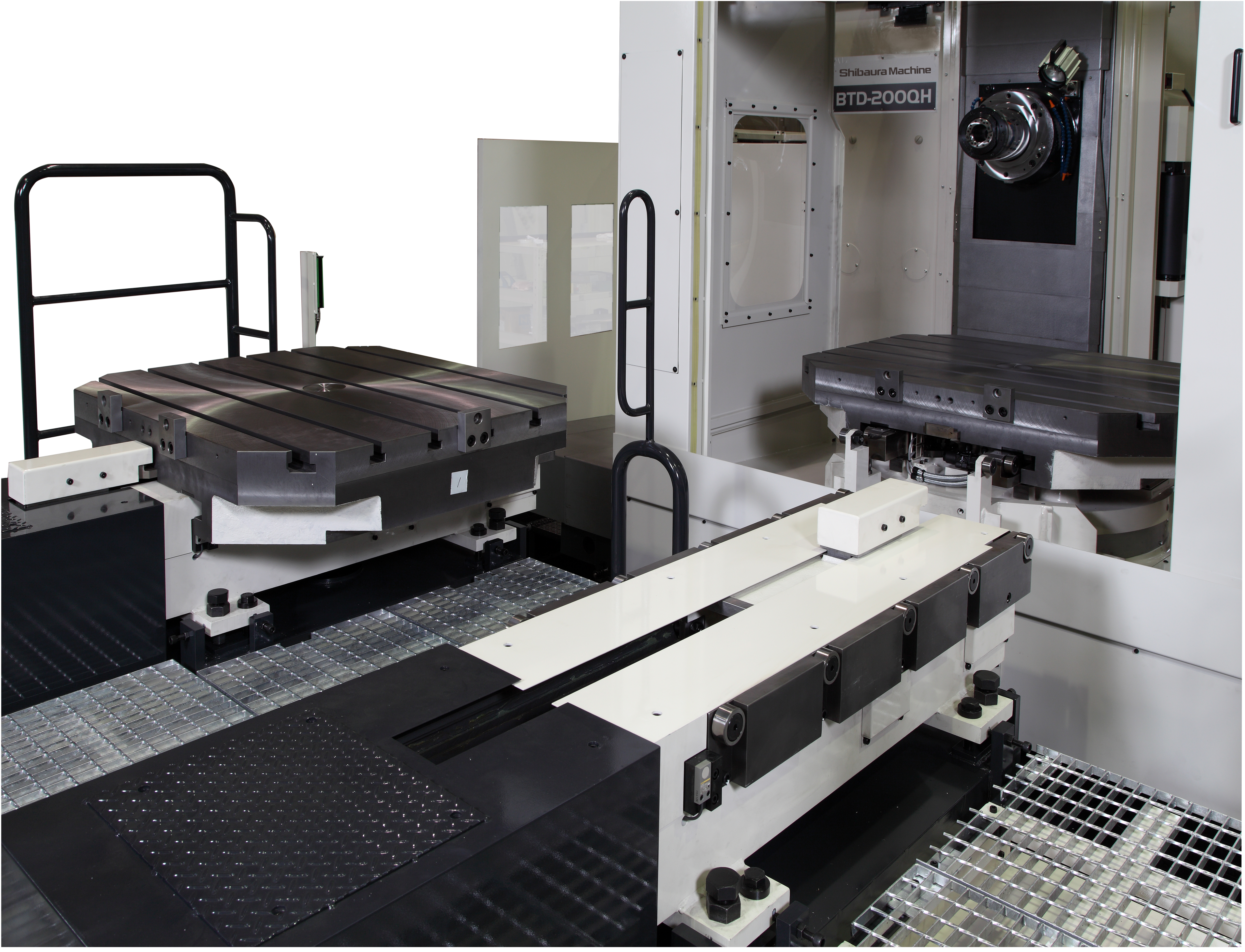 Automatic pallet changer (APC) two pallets. Pallet loading capacity: 7,700 lbs. (3,500 Kgs.). Some of machine specifications will be changed when APC selected. Please contact Shibaura Machine representative for more details